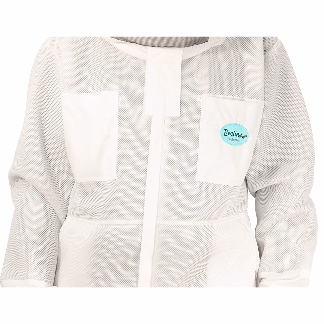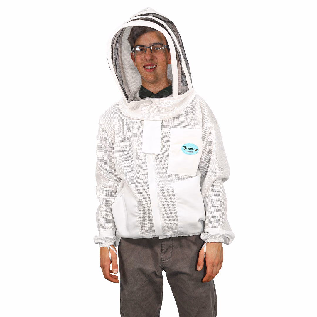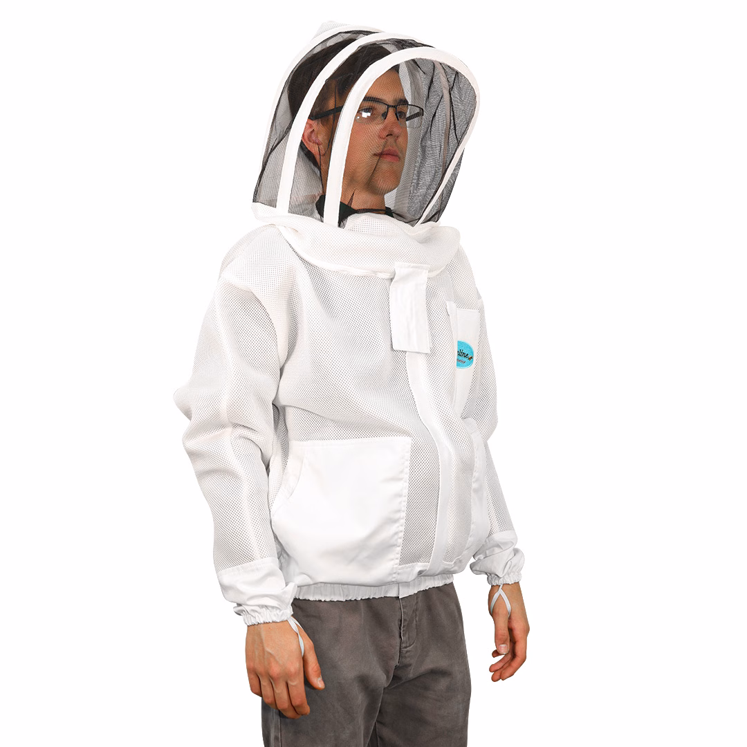 Cooler, yet more protective, these jackets are made out of two layers of ventilated mesh fabric. Made with our own pattern with all your favorite features- zippered hood with mesh screen, chest pockets, and elastic around the waste. Hood is removable.