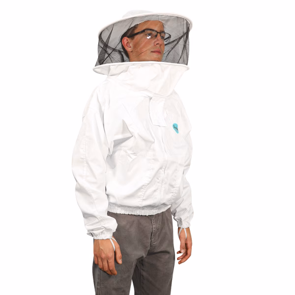 Cooler, yet more protective, these jackets are made out of two layers of ventilated mesh fabric. Made with our own pattern with all your favorite features- zippered hood with mesh screen, chest pockets, and elastic around the waste. Hood is removable.